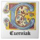 Azulejo Letra medieval azul y marfil rojo iluminada C