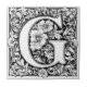 Letra medieval iluminada G Cubierta cerámica ilustracion vectorial blanco y negro de la carta en un elaborado estilo medieval, creado al estilo de Albrecht Dürer. El diseño es un cuadrado con un gran motivo floral central rodeado de patrones geométricos simétricos y remolinos.