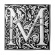 Azulejo Letter M art nouveau black and white Tile