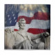 Foto de la estatua de Abraham Lincoln en el monumento a Lincoln en Washington DC con hermosos fuegos artificiales y la bandera de Estados Unidos en el fondo. Gran imagen compuesta para celebraciones de festividades patrióticas norteamericanas.