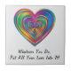 "Lo que sea que hagas, la tela cerámica es un corazón multicolor. El fondo blanco brillante es un buen telón de fondo para el corazón y el texto únicos. Coloque esta ficha donde quiera que tenda a permanecer. Es un recordatorio amable de ofrecerte amor a ti mismo y a los demás. ¡Disfrútenlo!