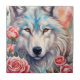 Azulejo lobo blanco rosa flores animales naturaleza arte