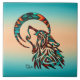 ¡Brilla tu casa con este singular mosaico de cerámica de lobo tribal "uno de bondad"! ¡Cuenta con un estilo nativo americano de lobo tribal en la luna con un fondo turquesa y Naranja! Este es un original diseño de arte "One of a Kind" del artista Kerry Miller.