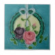 Reproducida a partir de una teja moldeada inglesa de Richards de 1900, esta vibrante baldosa es una delicia! Rosa, púrpura, verde, marfil y blanco sobre un fondo azul pavo real. Note que esta pieza es "falso alivio". Es en realidad una teja lisa plana que se hace en el estilo trompe l'oeil (tonto el ojo) y no es realmente dimensional como el original. Sólo se ve así.
