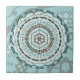 El diseño de este círculo concéntrico presenta capas de motivos blancos, turquesa y marrones inspirados en tejidos celtas y mehndi indio, como viñedos, cintas y flores de loto. Esta baldosa puede enmarcarse para crear un trívet o colocarse dentro de una caja de regalo de madera. Los mosaicos sin marco también caben dentro de la caja de regalo para crear un conjunto de coincidencias.