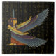 Baldosa cerámica con diosa maat egipcia de la verdad, la justicia, el equilibrio y el orden. Este diseño de azulejos de cerámica presenta a Maat con alas de propagación sobre un fondo de antiguos jeroglíficos egipcios de color dorado descolorido.