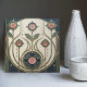 A fresh take on classic Mackintosh-inspired design, this elegant ceramic tile features stylized roses arranged like a faux stained-glass panel. Clean geometric framing, bead-chain details, and sweeping curved stems create a refined Art Nouveau look with a hint of Art Deco structure. The soft ivory background and muted palette of deep teal, sage green, and dusty blush pink are finished with warm metallic-gold outlines for a layered, dimensional effect. Perfect as a decorative wall accent, kitchen backsplash detail, bathroom feature tile, fireplace surround, or gift for lovers of vintage floral design.