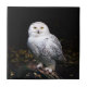 Fotografía de retrato animal de majestuosa búho de nieve parado en una rama.