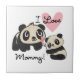 Un oso de panda de la mamá y del bebé diseña con un fondo y un texto rosado y corazones y un texto que lea a la mamá del amor de I en las camisetas, monos, tazas, tarjetas, pegatinas, bolsos, imanes, y más blancos.