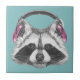 Características del este diseño un mapache lindo que lleva los auriculares rosados.