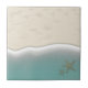 Baldosas de cerámica que tienen un bonito ilustracion de una playa de arena y olas de ruptura, con dos estrellas de mar en el océano.