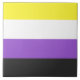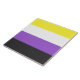 Este diseño presenta la bandera del orgullo no binario, que representa a personas que se identifican como no binarias (también escribidas no binarias) o generadoras, involucrando un espectro de identidades de género que no son exclusivamente masculinas o femeninas, sino que están fuera del binario de género. Las identidades no binarias pueden caer bajo el paraguas transgénero, ya que muchas personas no binarias se identifican con un género que es diferente de su biología. Un término informal para no binario es "enby", que viene de la abreviatura NB. Las personas no binarias pueden identificarse como que tienen dos o más géneros, sin género, moviéndose entre géneros, con una identidad de género fluctuante y siendo de tercer género u otro género.