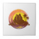 Azulejo Margen con el paisaje volcánico tropical y palmera