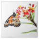 Fotografía de bonito de una mariposa monarca alimentada con flores de algas de leche. Delicado diseño de azulejos de cerámica blanca.