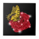 Azulejo Mariposa en rosa roja con estrellas y gotas de llu