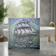 Command attention with this stunning faux bas-relief tile featuring a majestic, fully-rigged galleon sailing through dramatic, swirling waves and clouds. The design detail evokes classic maritime etchings or carved metal plaques. The tile is finished with the signature iridescent sheen, giving the ship's sails and hull a luminous, pearlescent glow that shifts between icy silver, pale aqua, and soft rose. This powerful, sophisticated piece is ideal for creating a dramatic focal point in libraries, dens, bars, or high-end nautical-themed spaces. Search ID1223 to see other marine elements in this dramatic metallic series. Note: design may contain generative content.