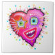 MI CORAZÓN GOLPEARÁ DE UNA emoji de arte contemporáneo y sonriente como un rostro emoticono en forma de corazón rojo en los vivos y coloridos colores de San Valentín de rojo, rosa, magentas y púrpura, acentuados con otros colores complementarios.