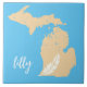 Azulejo Michigan Map Feather Nombre personalizado Blue Tan