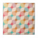 Add warm retro vibes to your home decor with this ceramic tile featuring checkered mid century starbursts on pastel checkerboards in plush pink, pastel blue, taupe and butter orange. this elegant design add warm and stylish flair to any space