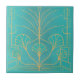 Baldosas de fuente Art Deco con finos efectos metálicos y ligeramente brillante en oro y turquesa o azul acuático. Perfecto como un trivet o para un elegante cuarto de baño retro con azulejos y decoración casera. Diseñado por Anne Londez.