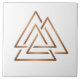 This minimalist ceramic tile features a modern interpretation of an interwoven trinity symbol, rendered in warm bronze line art against a soft neutral background. Clean, geometric lines create a sense of balance, strength, and continuity-making it both visually striking and deeply symbolic.