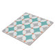 Un diseño moderno y moderno de formas geométricas de flor fresco inspirado en los patrones retro de mediados de siglo en tonos claros verde azulados, naranjas, blanco y gris