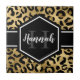 Moda dorada y leopardo negro imprimir pequeños azulejos de cerámica con un nombre personalizado y plantilla monograma. Un fondo de estampado de animales de safari lindo y a la moda con tu propia personalización.