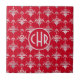Azulejo Monograma elegante de damasco blanco y rojo