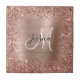 Azulejo pequeño de cerámica cuadrada monogramado decorativo para tu fiesta de boda. Gráficos de brillo falso glamuroso de chica, purpurina rosa dorada falsa brillante y hoja de rosa y rosa dorada ombre. Puedes personalizar el estilo y el color para la tipografía de monograma personalizada. Todo el brillo y el resplandor se crean con gráficos de arte digital que se imprimen planos como una foto en tus suministros de fiesta.