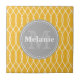 Moda, moderno, elegante y elegante patrón de entramado moderno en una paleta de colores amarillo y blanco brillante con una placa con el nombre de su personalizado personalizado y letra inicial monograma.