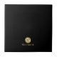 Diseñador de lujo negro y dorado con monograma negro en un elemento de círculo dorado con nombre en estilo de fuente profesional dorado sobre fondo negro.