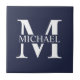 Azulejo Monograma y nombre personalizados del azul marino