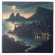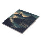 Bring the enchanting atmosphere of a starlit harbor into your home with the "Moonlit Port" ceramic tile. This artwork features a picturesque coastal village glowing with amber light against a deep indigo night sky. The glossy ceramic finish enhances the rich colors and fine details of the illustration, making it a perfect decorative accent for a kitchen backsplash, a bathroom wall, or displayed on a mantle using an easel. Durable and vibrant, this tile combines the charm of nautical storytelling with a high-quality, polished look.