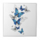Morfo de las mariposas azules voladoras y mariposas blancas en un fondo abstracto y claro. Morfo. Diseño con morfo de mariposas azules.