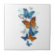 Azulejo Morfo y monarca de las mariposas voladoras