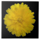 Esta magnífica baldosa muestra una foto de una flor de mariscos amarilla en un fondo negro.