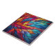 Un impresionante diseño abstracto que recuerda a una flor floreciente o plumas de fuego, compuesto de rojos vivos, naranjas, azules y amarillos. El intrincado patrón de cristal teñido crea una sensación de movimiento y energía, lo que lo convierte en una adición perfecta a cualquier espacio. Ideal como baldosa cerámica decorativa o trivet funcional, esta pieza aporta calidez, color y estilo artístico a su decoración.