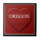 Un ilustracion gráfico en 3D de un corazón y un mapa de Oregón con el texto de Oregón en una baldosa decoradora. Obra de arte original: Copyright Charmaine Paulson