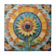 "flores de girasol amarillas", "girasoles", "turquesa verde azul naranja, "arte de mosaico de estilo gaudí", "diseño inspirado en van gogh", "jardín de calor de verano", "cabeza de flores decorativas", "azulejos de cerámica floral ornamental", "verano alegre y colorido", "sol soleado".