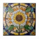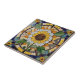 "flores de girasol amarillas", "girasoles en verde oscuro", "turquesa verde azul naranja, "arte de mosaico al estilo gaudí", "diseño inspirado en van gogh", "jardín de verano", "cabeza de flor decorativa", "azulejos de cerámica floral ornamental", "verano alegre y colorido", "simetría simétrica"
