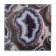 Esta baldosa presenta una imagen detallada y de alta resolución de un corte geodésico amatista natural, mostrando sus complejas formaciones de cristal y sus bandas. Los tonos morados y blancos de la geoda, junto con la textura exterior áspera, son capturados para dar un toque de elegancia natural y maravilla geológica a cualquier espacio. Ideal para añadir un acento único y decorativo a tu casa u oficina.