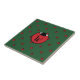 Cuatro tipos de ladybugs; siete manchas, dos manchas, con manchas rosas y asiáticas; hacen un patrón de puntos de polka en un fondo verde. También llamados ladybirds o escarabajos femeninos, estos insectos protegen granjas y jardines de plagas, particularmente áfidos. Esta baldosa puede enmarcarse para crear un trívet o colocarse dentro de una tapa de caja de regalo de madera. Los mosaicos sin marco también caben dentro de la gran caja de regalo para crear un conjunto de coincidencias. Personalizar el monograma con su inicial para que sea el suyo propio.
