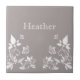 Azulejos florales de mariposa dulce y delicado con un fondo gris sucio y polvoriento, mariposas de marfil y adornos de viñas florales. Esta elegante baldosa florida completaría cualquier decoración. Fácil de personalizar, simplemente agregue el texto personalizado de su elección en los campos de texto proporcionados. Haga clic en el botón "Personalizar" para encontrar opciones de personalización adicionales.