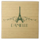 Elegante y moda Tile florido francés con un falso fondo de madera y un diseño de la Torre Eiffel en verde oscuro adornado con cascadas de elegantes remolinos. Este diseño elegante y elegante es fácil de personalizar con el texto personalizado de su elección. Haga clic en "Personalizar" para encontrar más opciones de personalización.