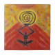 Azulejo Mujer colorida de yoga sosteniendo energía espiral