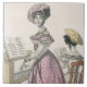 Imagen: La mujer joven 94431 en un vestido rosado del organdí arregló con el negro y una boina con las cintas de satén, anuncio del crespón de los "modos de París", c.1825 (grabado). Escuela francesa, (siglo XIX). Colección privada, la colección de Stapleton. Arte, Bello Artes.