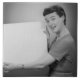 Mujer madura que lleva a cabo el cartel negro, marcas del retrato el | George el | AssetID: 81767392