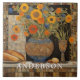 Hermoso nombre artístico de costumbre vida con flores azules, amarillas y naranjas en una escena rústica azul con pan y fondo de mosaico estilo Art Nouveau baldosa decorativa. Personalizar la pancarta inferior con su nombre o apellido.