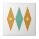 Este colorido embaldosado moderno de cerámica de mediados de siglo presenta diamantes azul turquesa y naranja con estrellas de color crema. ¡Es muy divertido añadirle a su proyecto de azulejos!