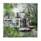 Diseño artístico de un hombre que conduce su bote estrecho a lo largo del canal. Los barcos del canal, conocidos en el Reino Unido como barcos estrechos, se utilizaron originalmente para transportar mercancías por todo el país. Ahora se utilizan principalmente para el ocio y atraen a personas de todo el mundo para disfrutar de nuestro campo rural. Estos barcos parecen muy bonitos con sus camarotes de colores vivos, azules, rojos o verdes. Flores y diseños de castillo también adornan los barcos más tradicionales.